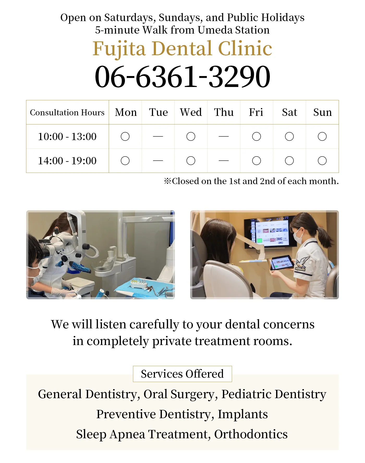 We offer services on weekends and public holidays, making it easy for busy individuals to attend regular check-ups and treatments.